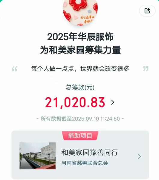 以善為炬,點亮和美家園:華辰服裝用責任擔當書寫企業溫度
